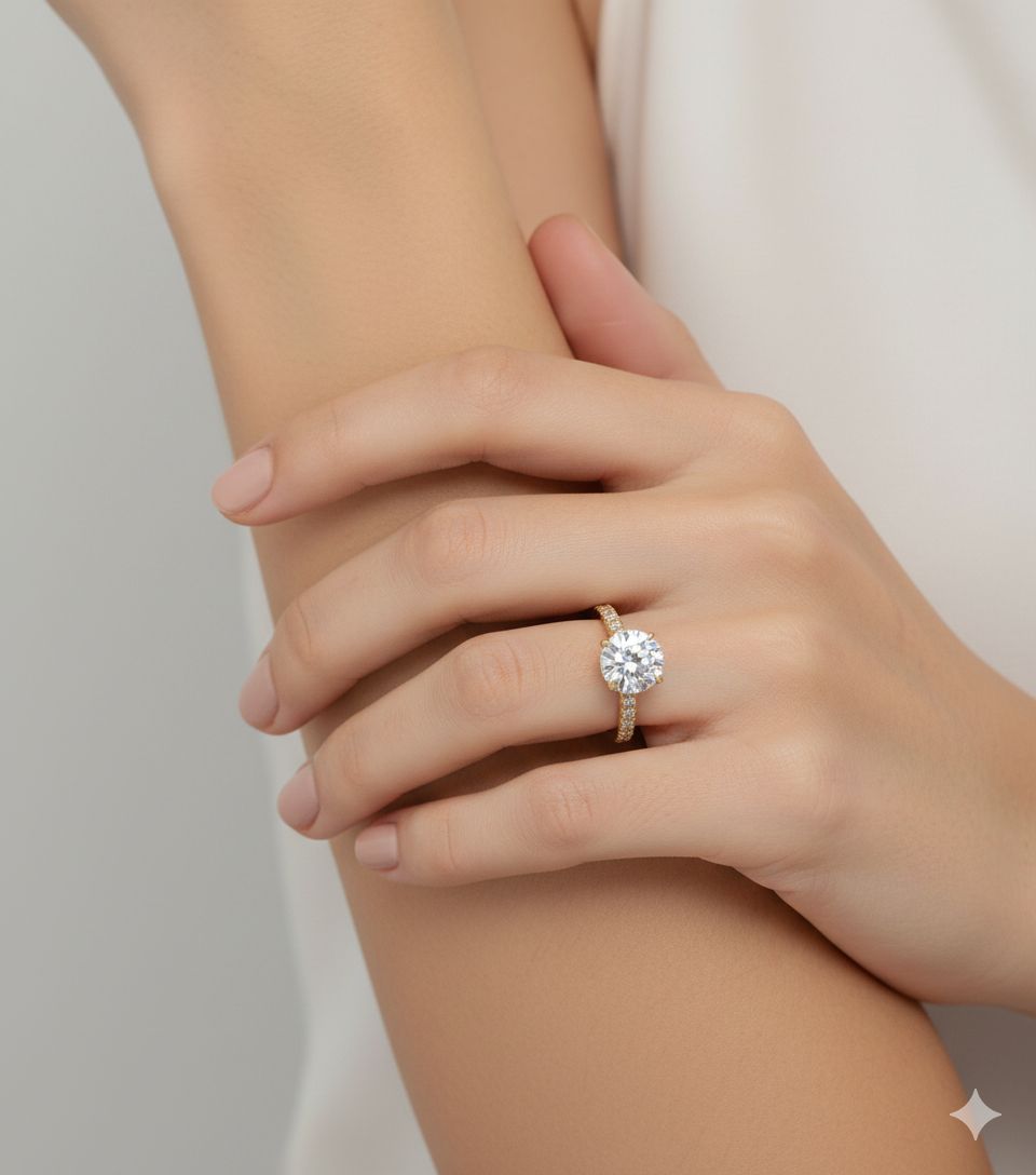 טבעת אירוסין יהלום מעבדה מזהב – עיצוב קלאסי על־זמני