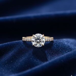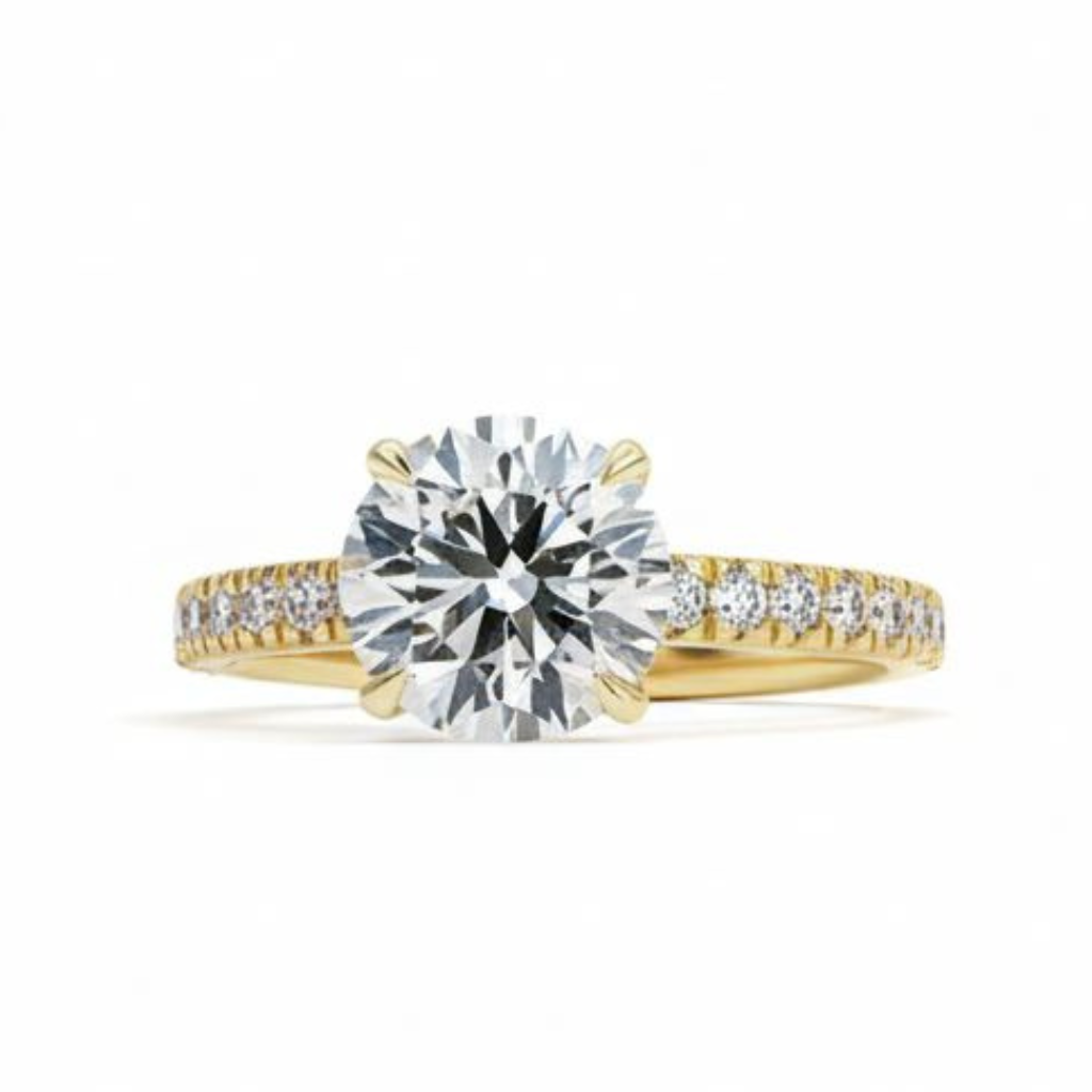 טבעת אירוסין יהלום מעבדה בחיתוך עגול עם יהלומי צד מזהב 14K – יוקרה על־זמנית מבית תכשיטי יוסף