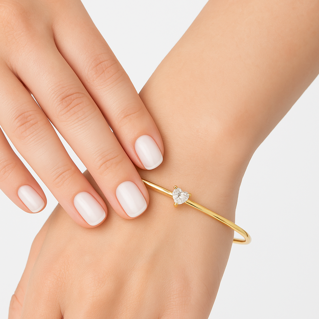 צמיד בנגל משובץ יהלום מעבדה בצורת לב – יוקרה נצחית לכל אירוע