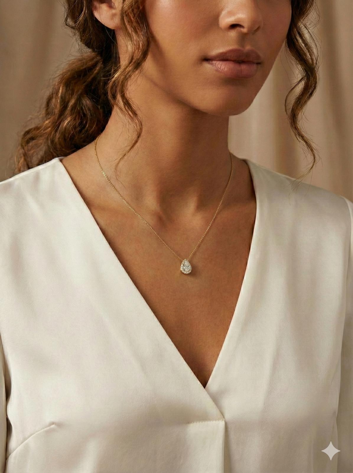 שרשרת יהלומים מעבדה בעיצוב טיפה מזהב 14 קראט בעיצוב קלאסי, המתאפיינת במראה אלגנטי, מאוזן ועל־זמני. שילוב ההרמוני בין עיצוב קלאסי ליהלומי מעבדה יוצר תכשיט שמאיר את המראה באופן טבעי, ללא קשר תשומת לב יתרה. מדובר בפריט המתאים לשימוש יומיומי חכם והן להופעות ערב מרשימות.