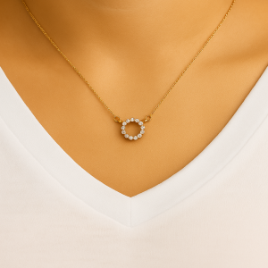 שרשרת יהלומים מזהב 14 קראט בעיצוב פרח, המתאפיינת במראה אלגנטי, מאוזן ועל־זמני. שילוב ההרמוני בין עיצוב ייחודי ליהלומים טבעיים יוצר תכשיט שמאיר את המראה באופן טבעי, ללא קשר תשומת לב יתרה. מדובר בפריט המתאים לשימוש יומיומי חכם והן להופעות ערב מרשימות.