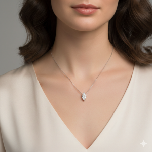שרשרת סוליטר יהלום מעבדה מרקיזה מזהב 14K