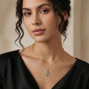 שרשרת פרפר יהלומים ואבני חן טבעיים מזהב 14K